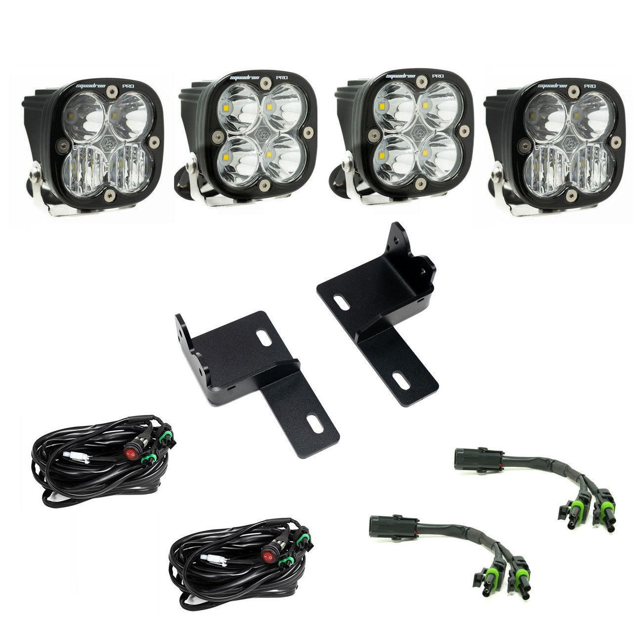 The Baja Designs Squadron Pro Behind-the-Grille Kit for the 2025-on Toyota 4Runner (Non-TRD Pro/Trailhunter models) is designed with as the ultimate behind-the-grille LED lighting kit. This all-in-one kit offers four Squadron Pro LED off-road lights in multiple lens configurations, mounting brackets, hardware and wiring harness for ease of installation. Paired with the Squadron Pro that offers 4,095 raw lumens each, giving enthusiasts more intensity to cut through the darkness and illuminate the trails while not affecting the stock look of the 6th Gen 4Runner., With the combination of spot and driving combo lens patterns this kit will illuminate zones 1-4 offering safety while on the trails.